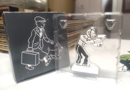 Figura plana metàlica Tintín América b/n.