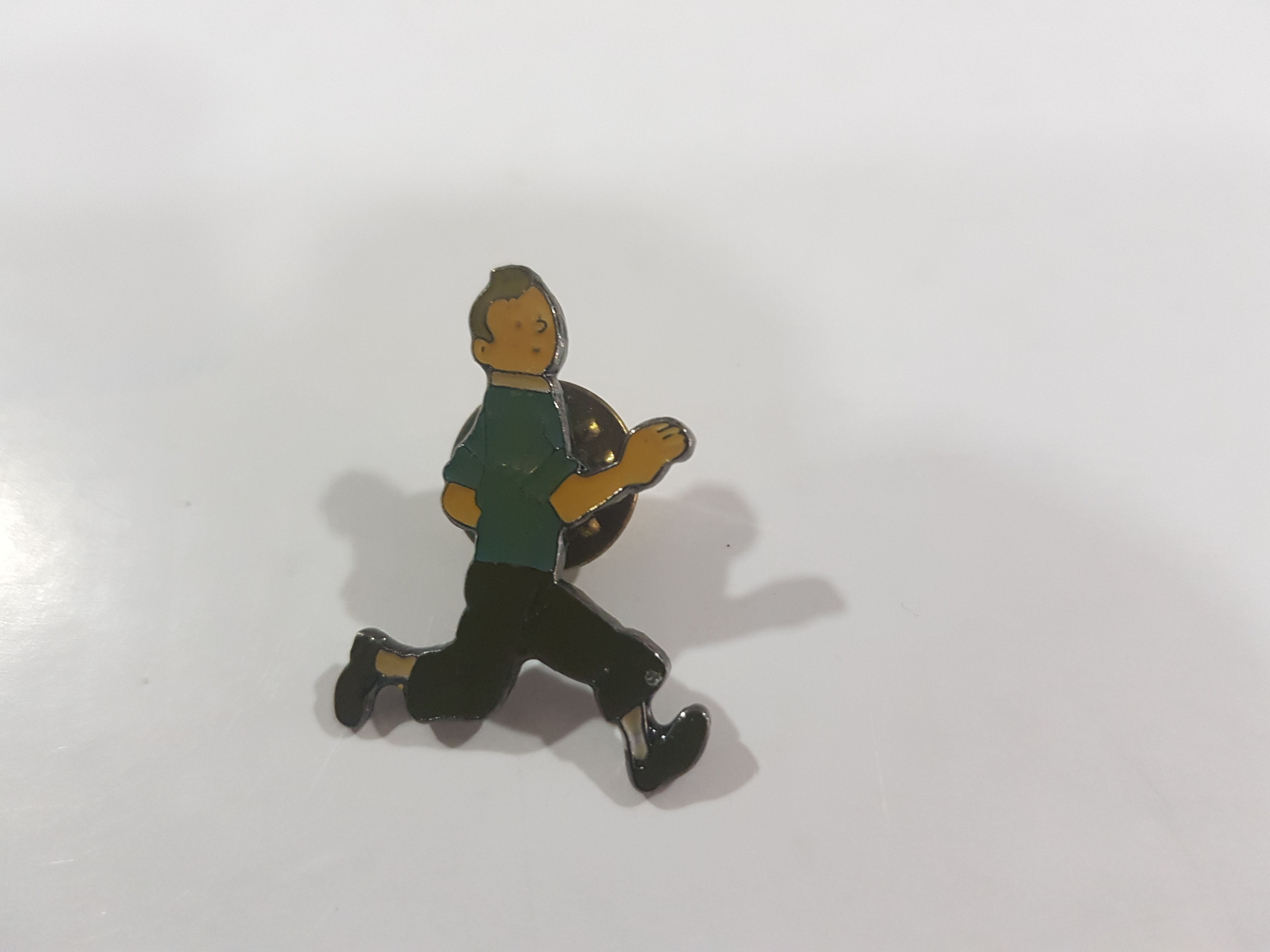 Pin de la marca Córner silueta de Tintín corrent. Imatge de L'Illa Negra.