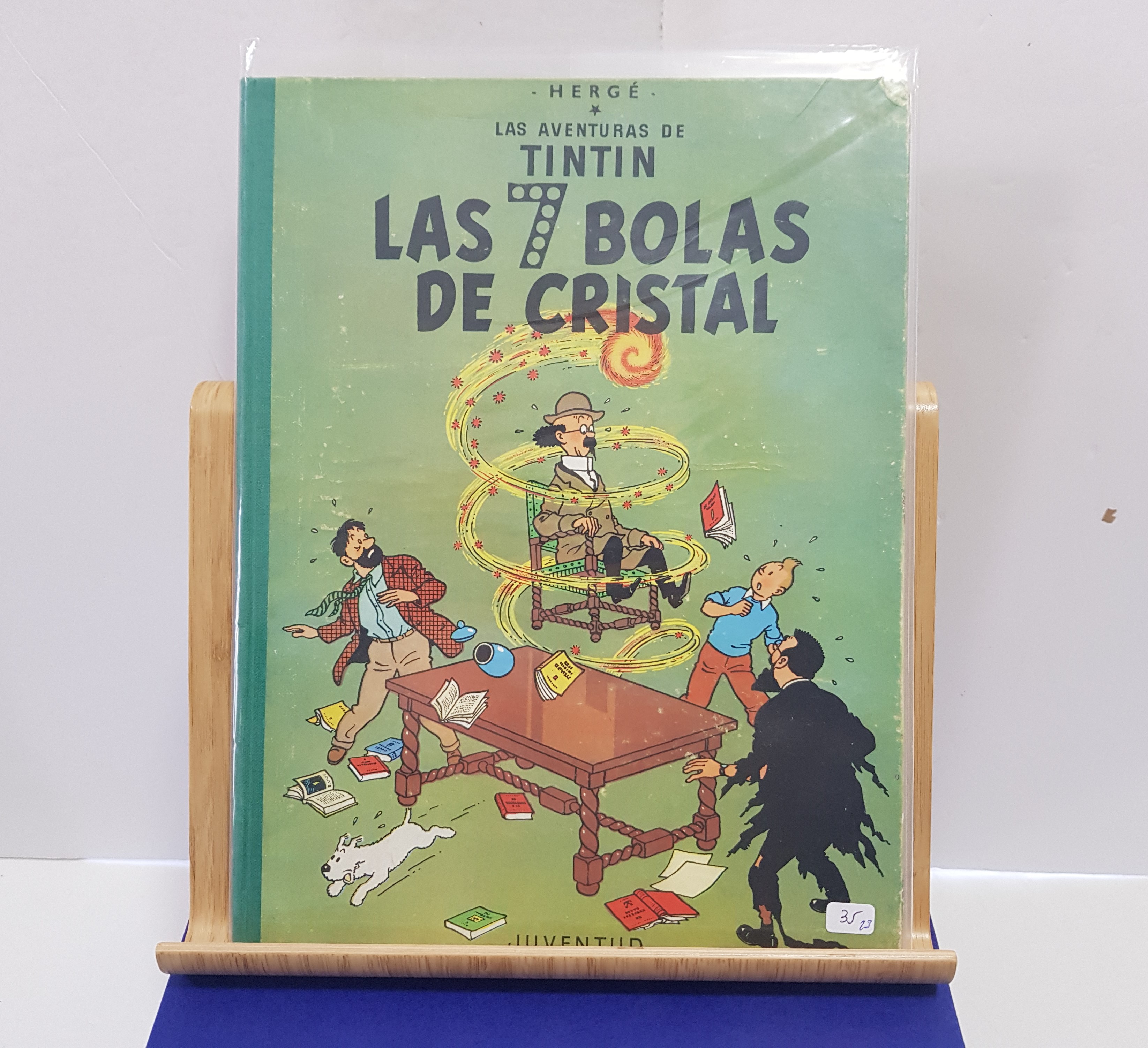 Llibre de les Aventures de Tintín en estat bastant bo de Les 7 boles de Cristall en la seva 2a edició fabricat per Joventut l'any 1967, traduït per Concepción Zendrera i imprès per Litografies Rosés de Barcelona.