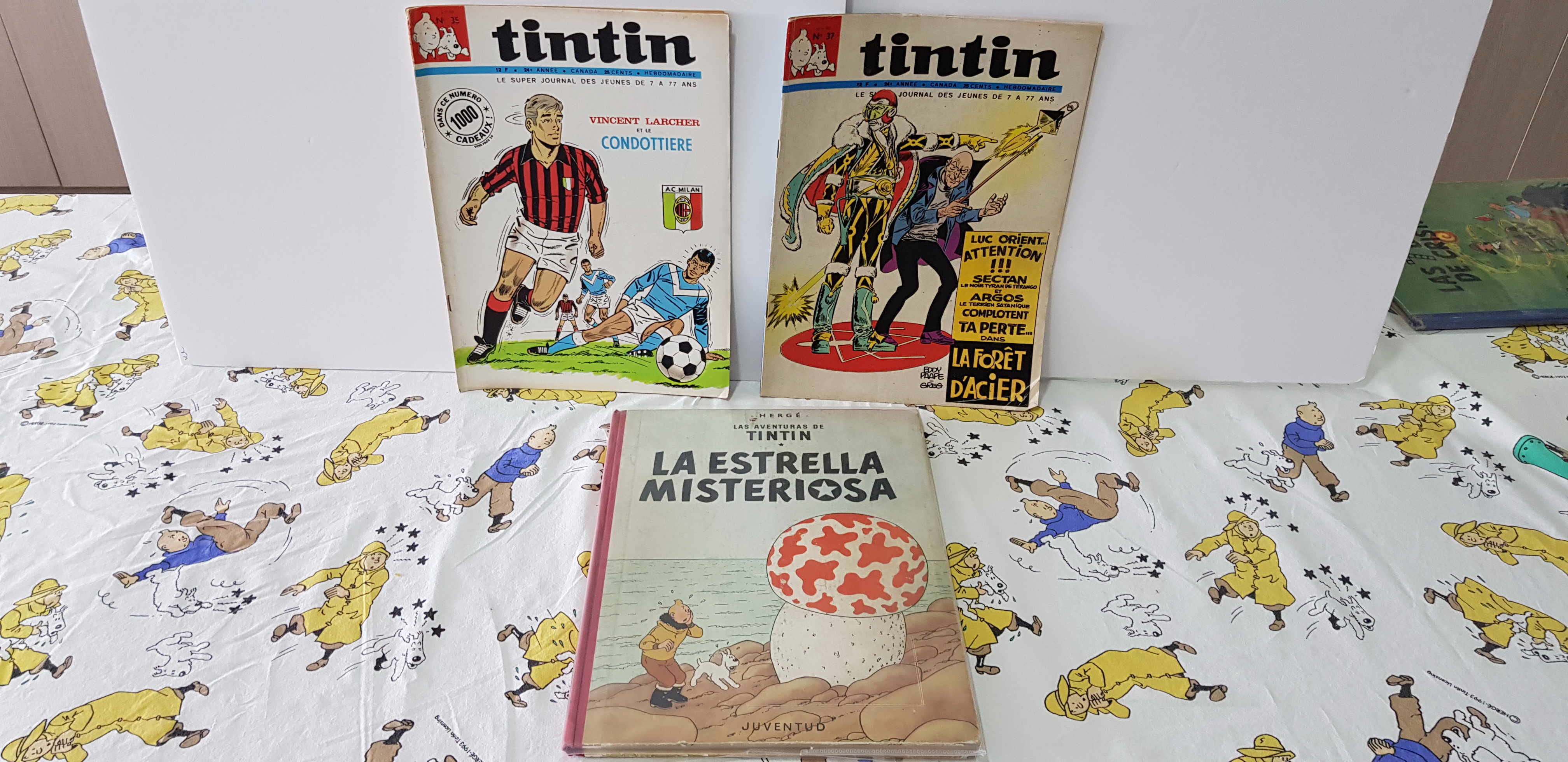 - Tot un grup de llibres en primeres edicions en castellà en molt bon estat acompanyats de revistes Tintín dels anys 1960.