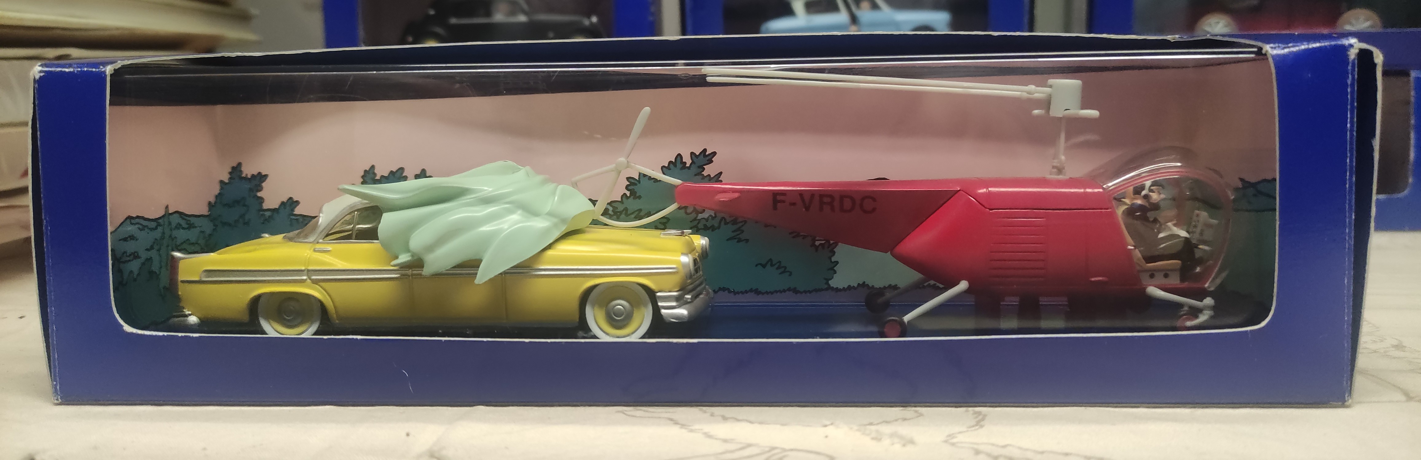 Maqueta a escala 1/43, de metal. Secuencia del intento de secuestro del profesor Tornasol por parte de los agentes bordurios, con caja azul y con los dos certificados.