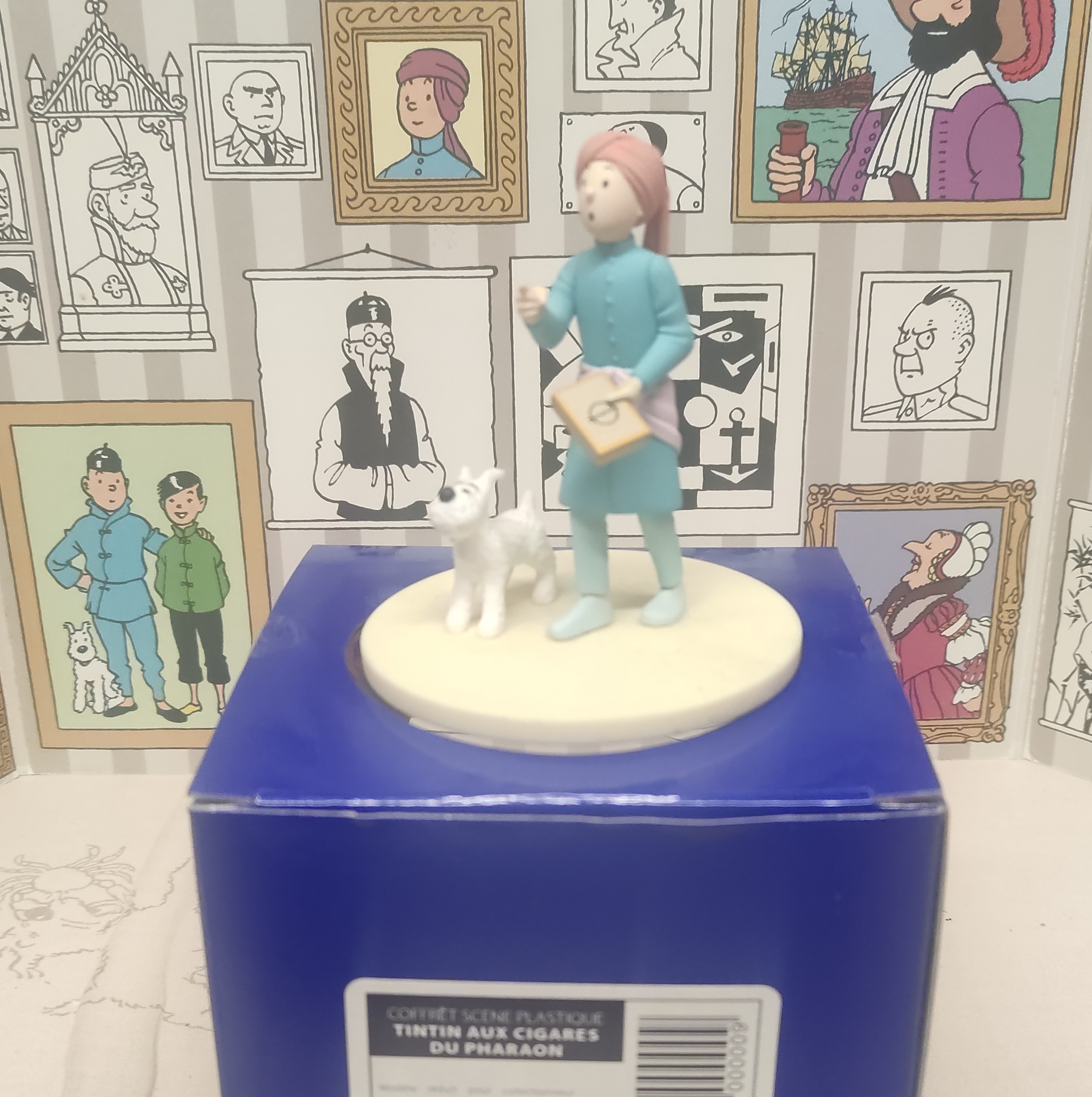 - La figura de plomo del desayuno de Tintín en el Loto azul.