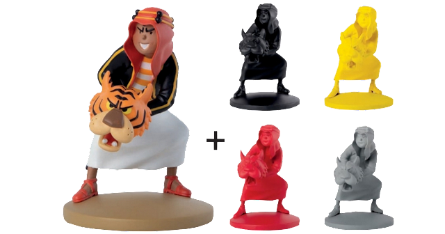 Como novedad, nos deleitan con la figura de Abdallah con máscara de tigre a todo color y de regalo 4 figuras monocolor de la misma imagen.